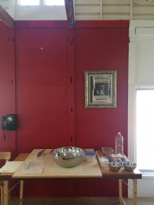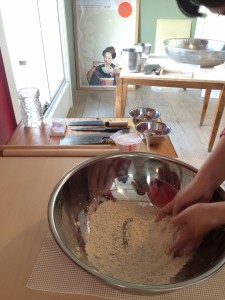 とりあえず打ってみようという感じで、そば打ち体験を「丘の上 展示室」で行わせていただきます。
